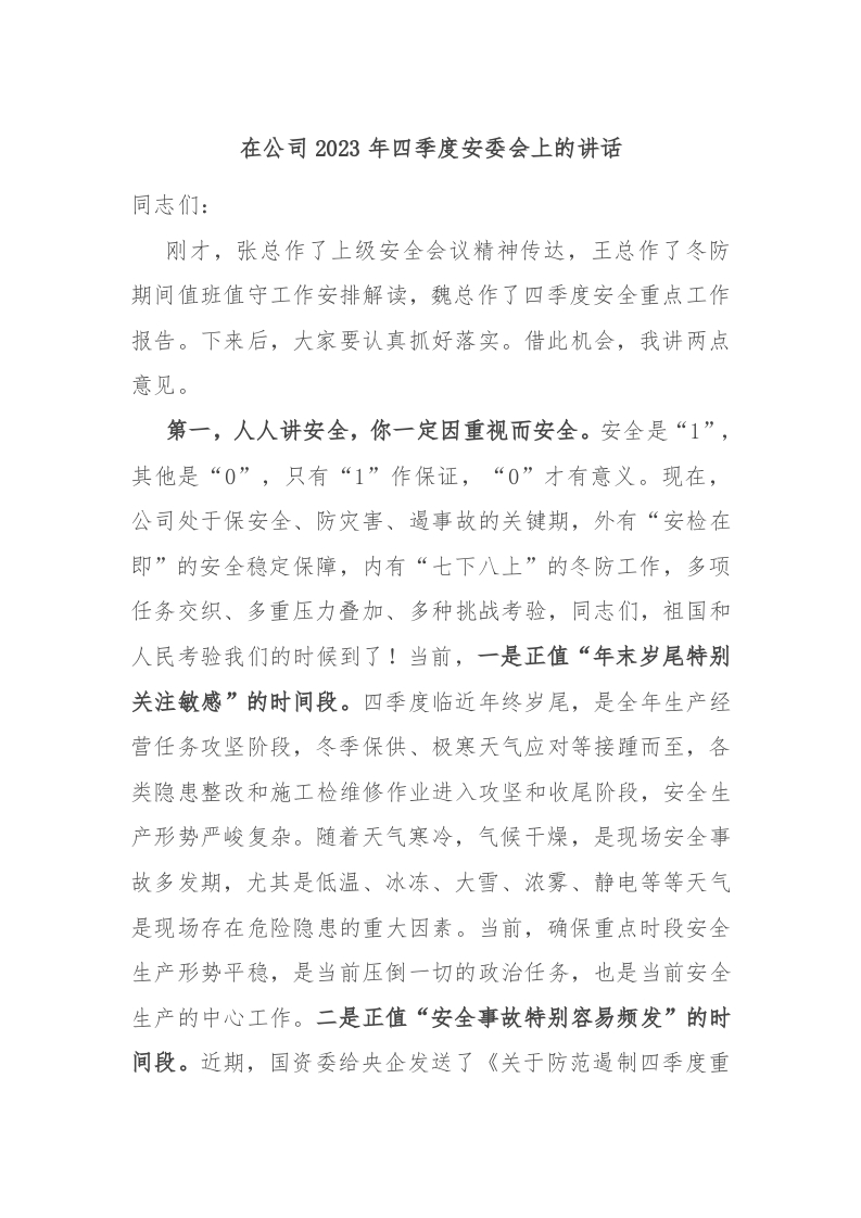 / 在公司2023年四季度安委会上的讲话