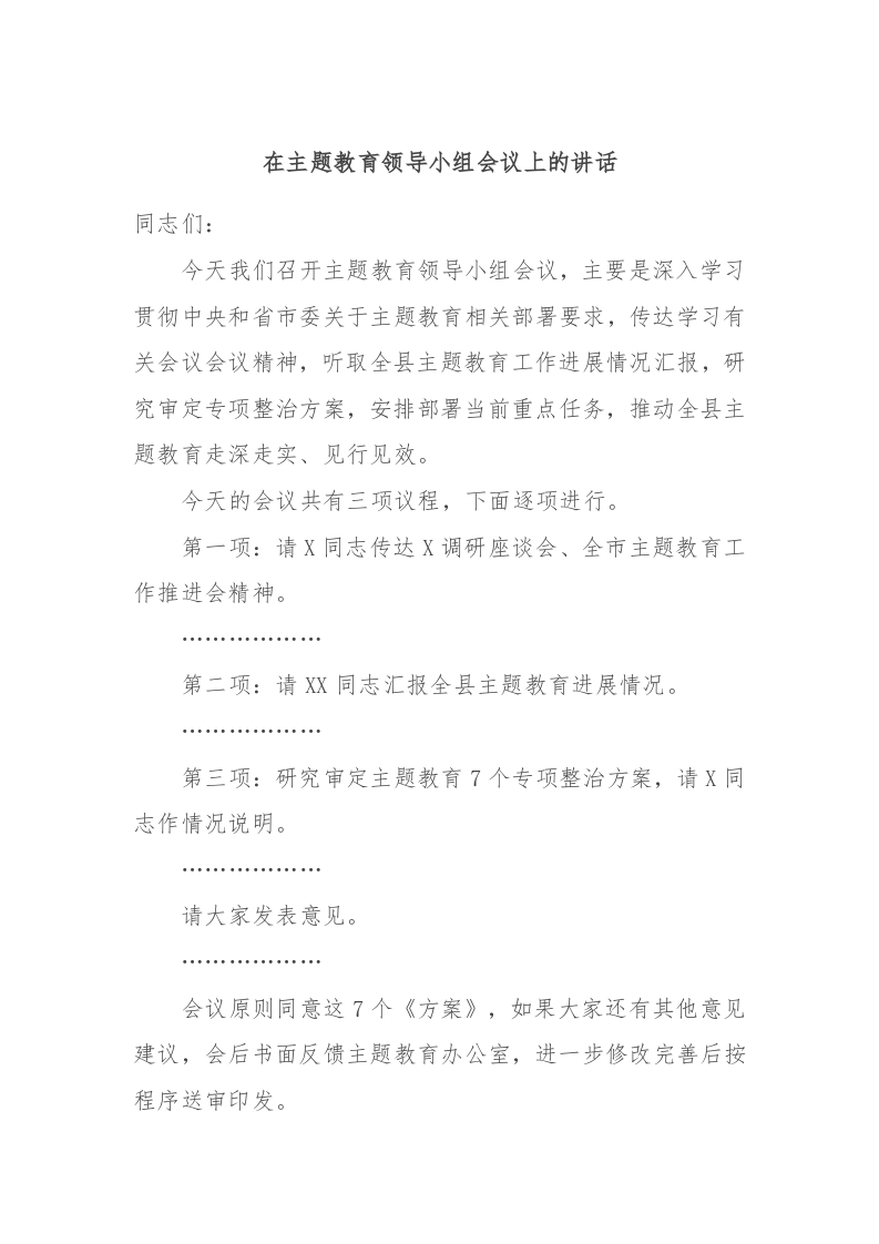 / 在主题教育领导小组会议上的讲话
