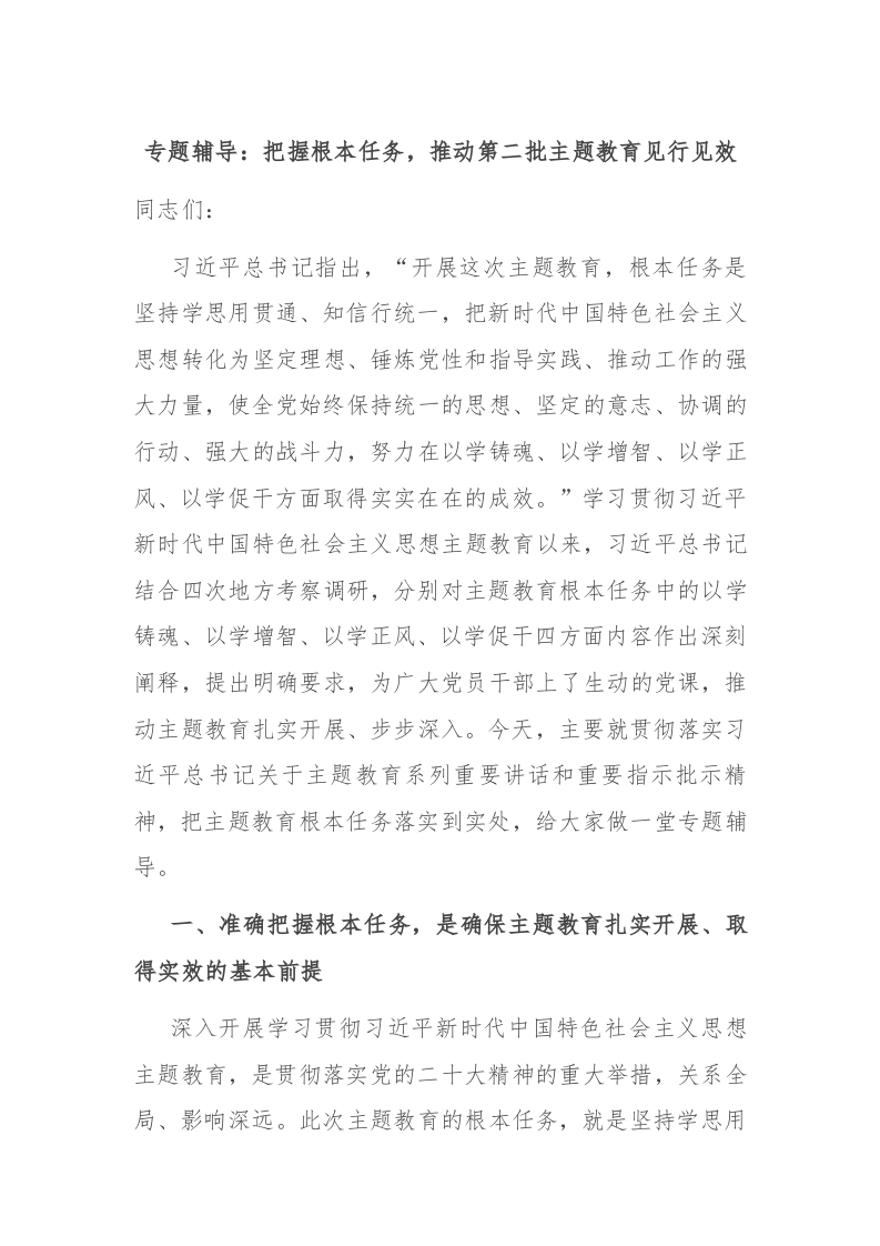 / 专题辅导:把握根本任务,推动第二批主题教育见行见效
