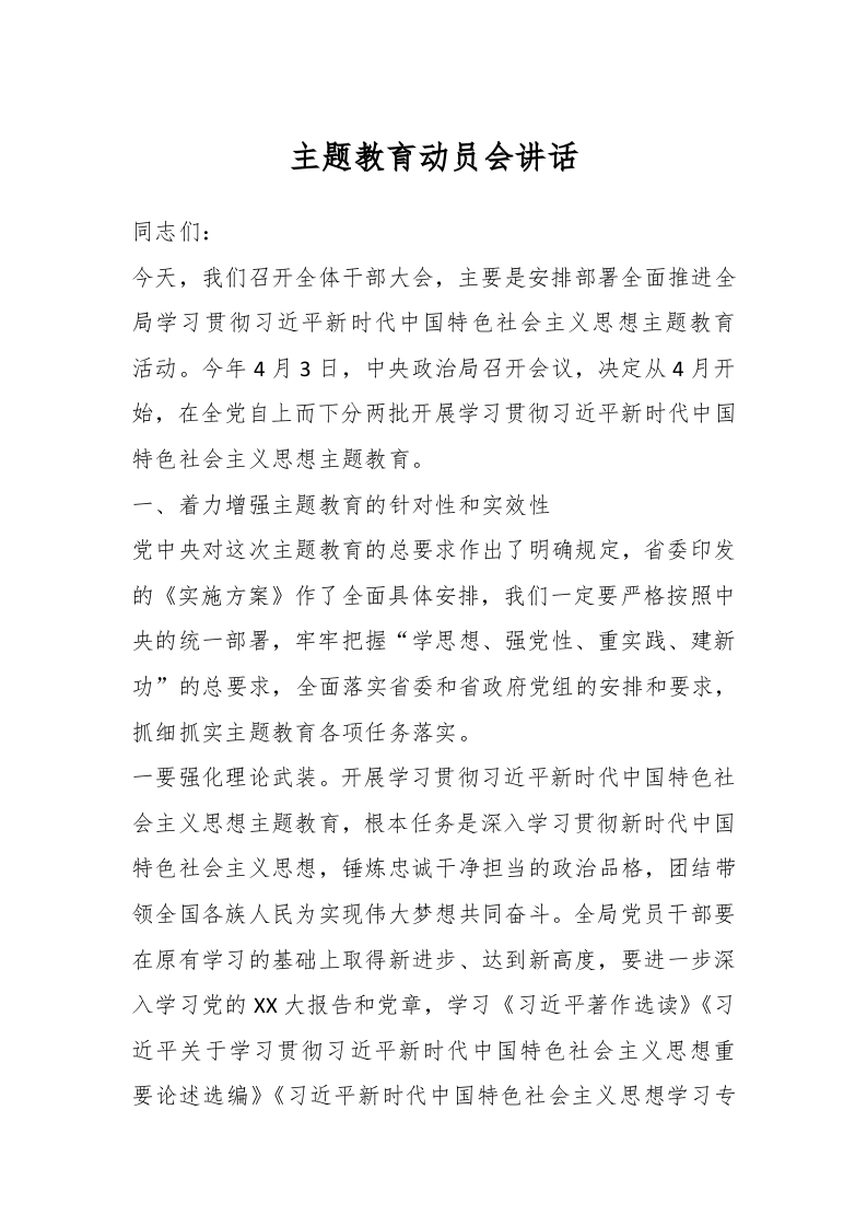 / 主题教育动员会讲话