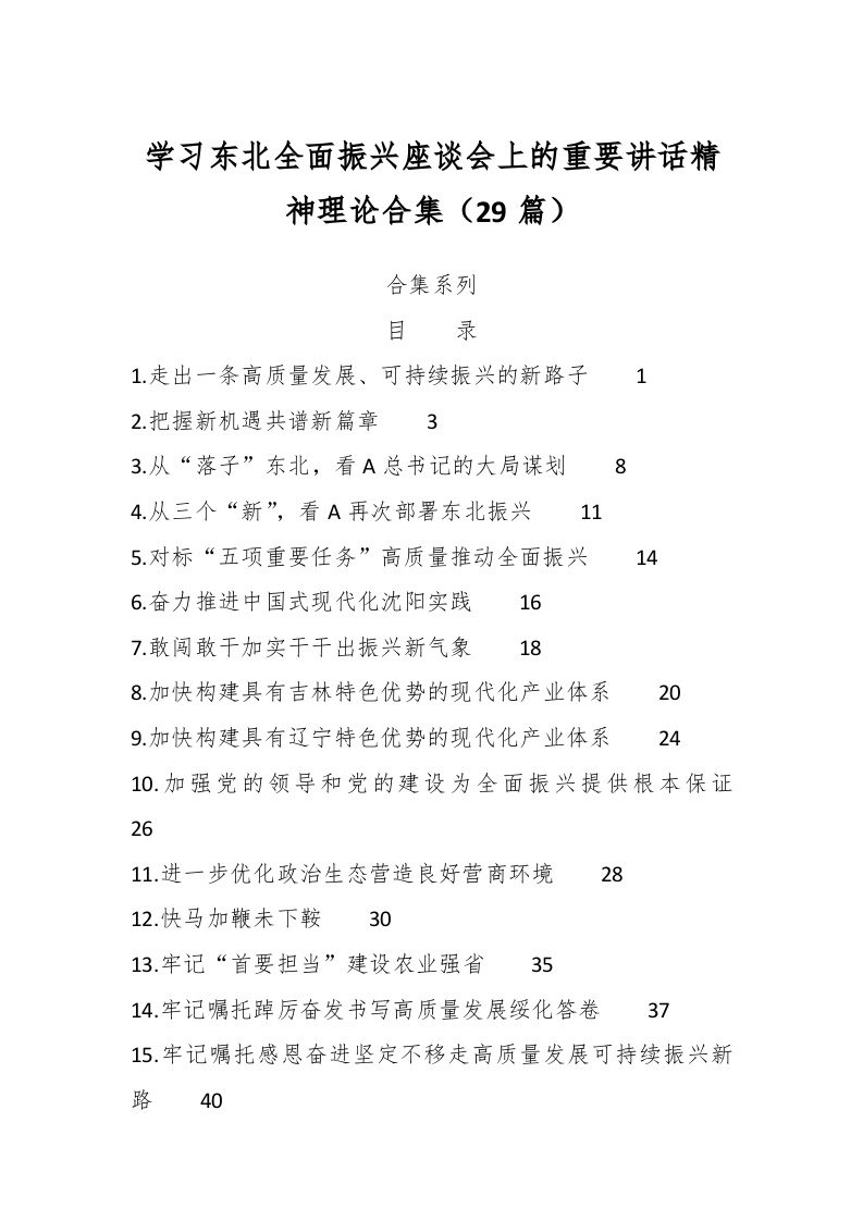 / (29篇)学习东北全面振兴座谈会上的重要讲话精神理论合集