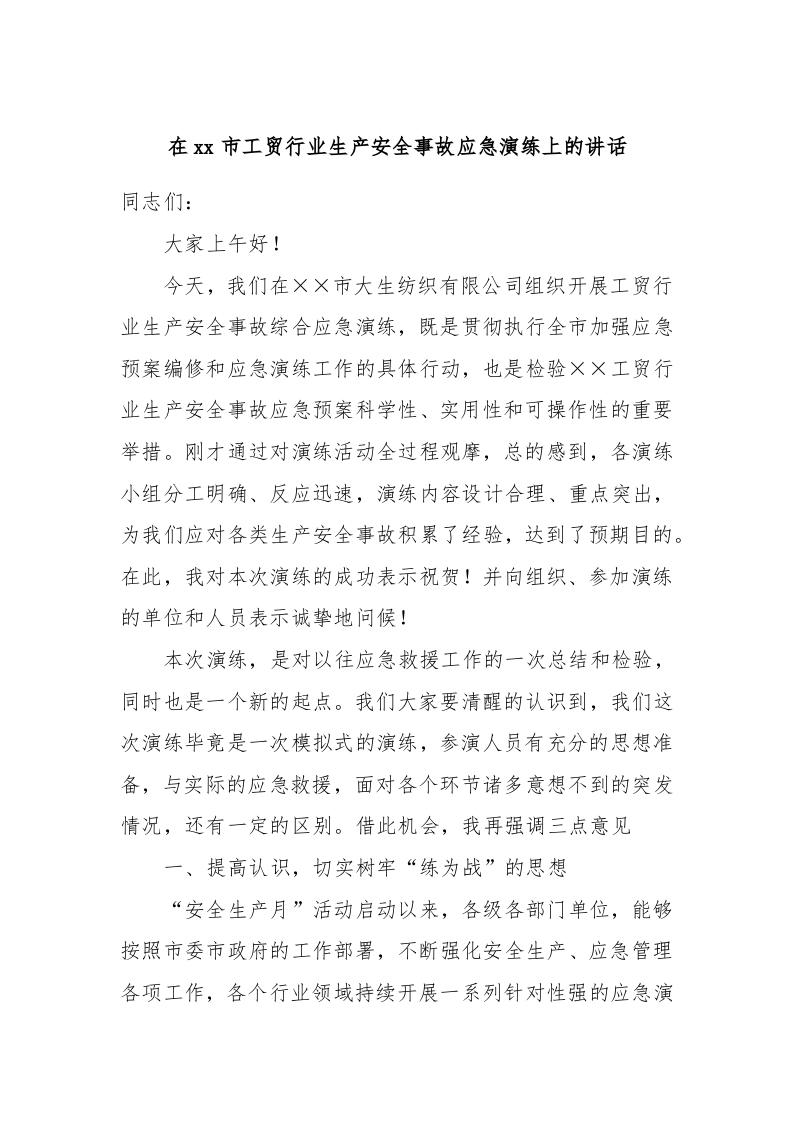 / 在xx市工贸行业生产安全事故应急演练上的讲话