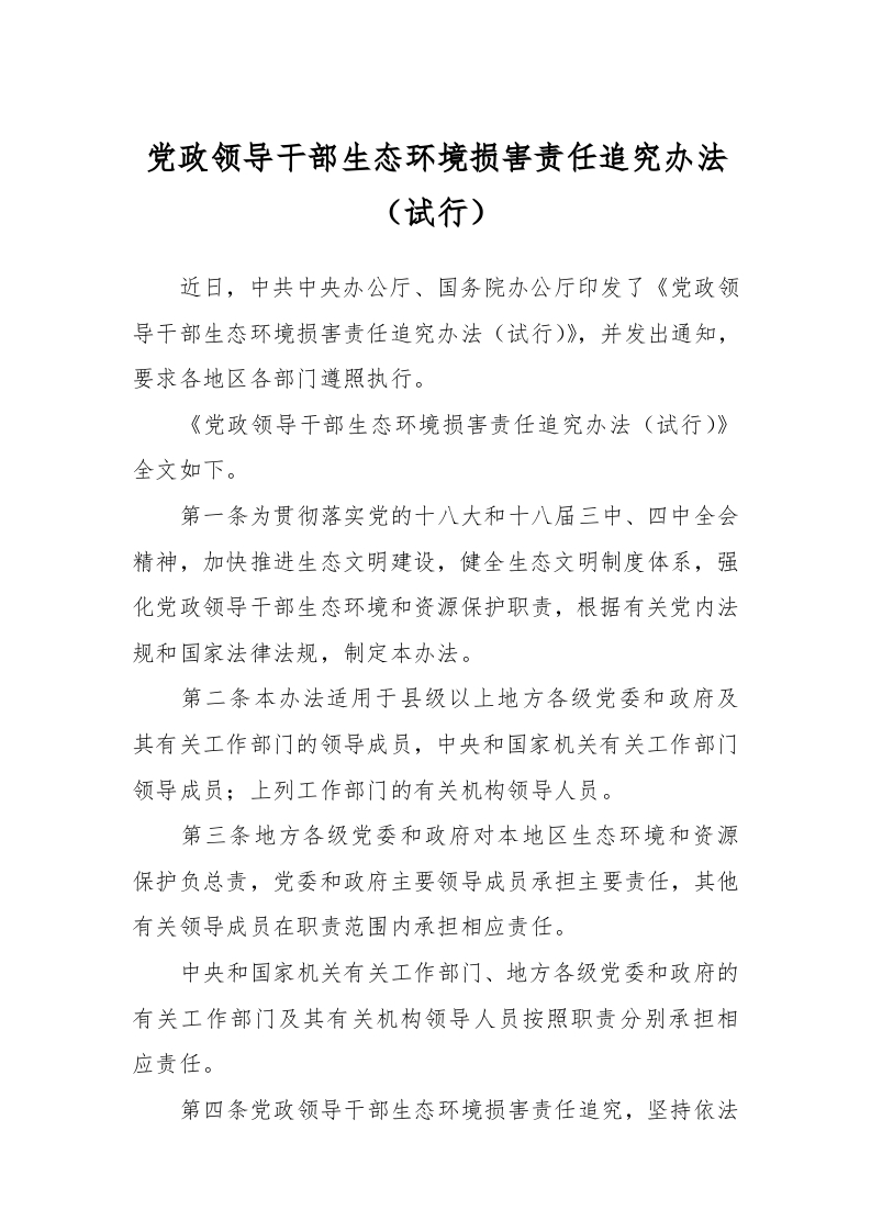 / 党政领导干部生态环境损害责任追究办法(试行)