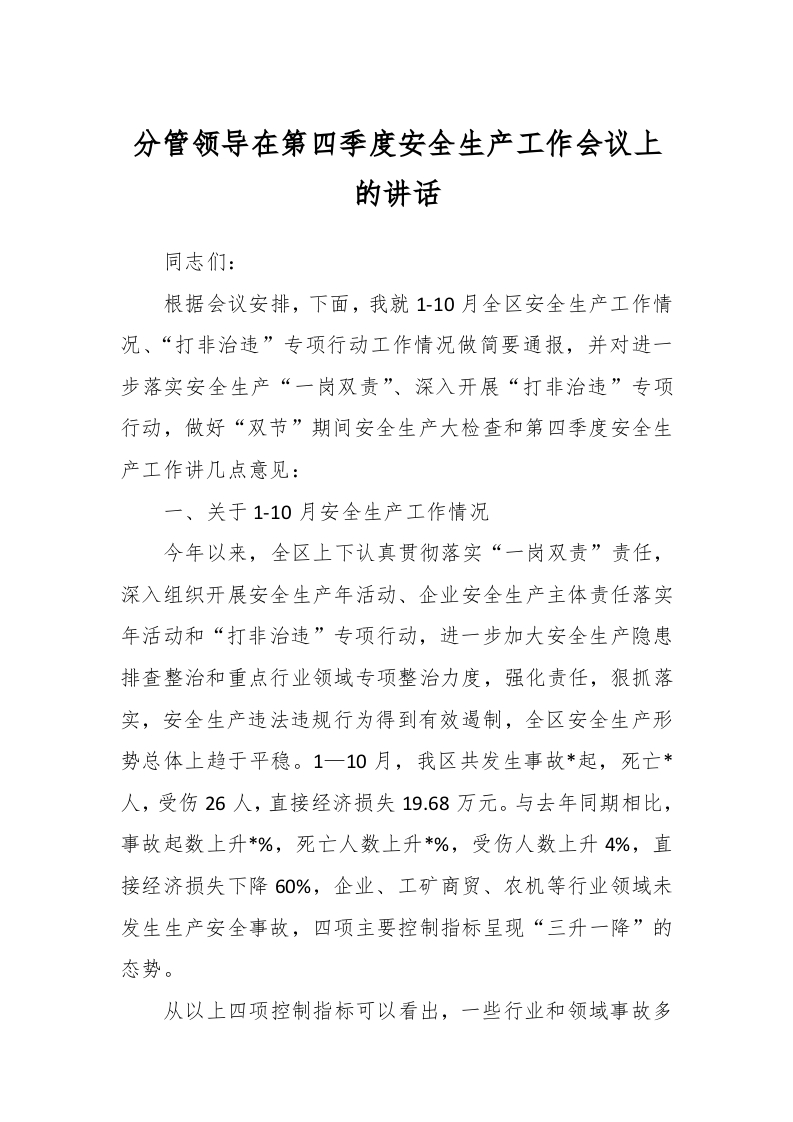 / 分管领导在第四季度安全生产工作会议上的讲话