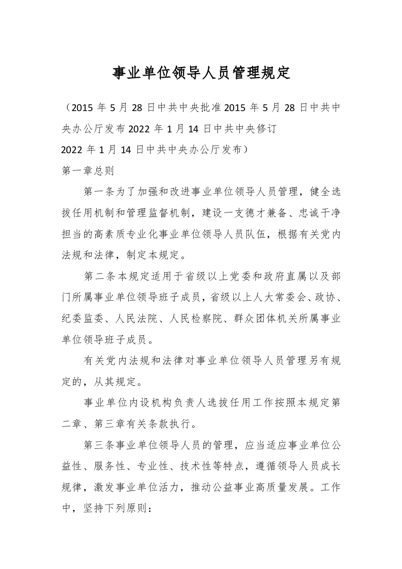 / 事业单位领导人员管理规定