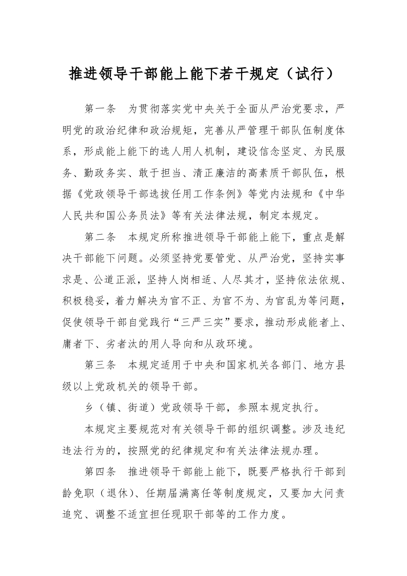 / 推进领导干部能上能下若干规定(试行)
