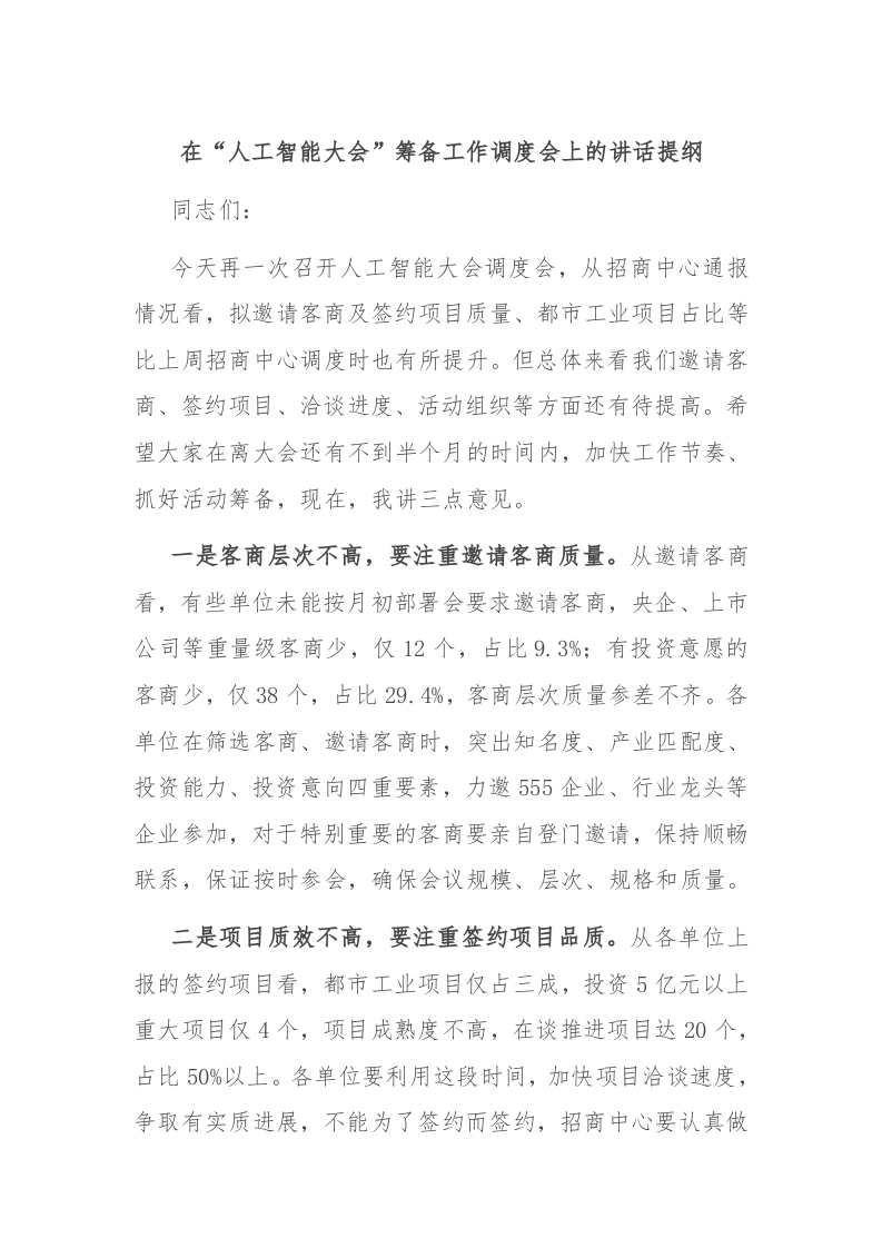 / 在“人工智能大会”筹备工作调度会上的讲话提纲