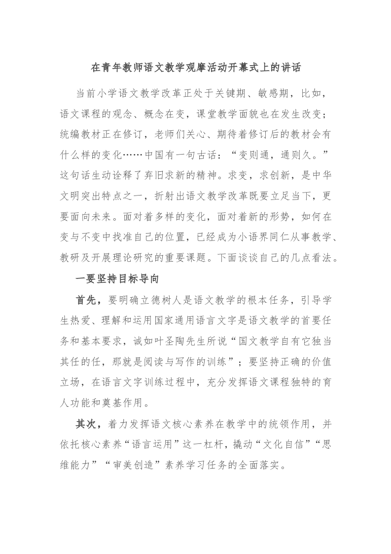 / 在青年教师语文教学观摩活动开幕式上的讲话
