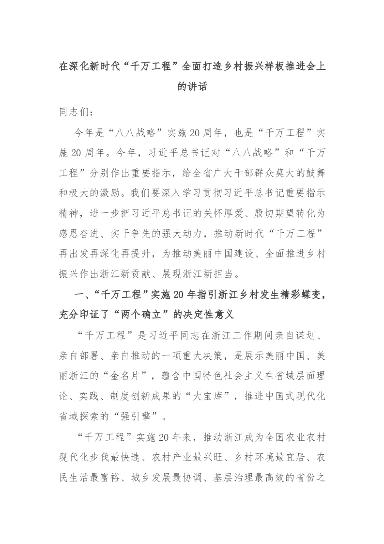/ 在深化新时代“千万工程”全面打造乡村振兴样板推进会上的讲话