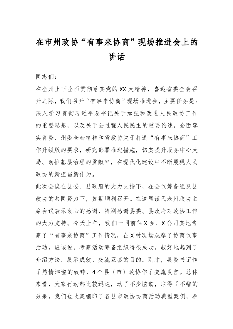 / 在市州政协“有事来协商”现场推进会上的讲话
