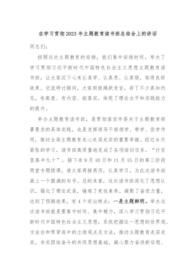 / 在学习贯彻2023年主题教育读书班总结会上的讲话