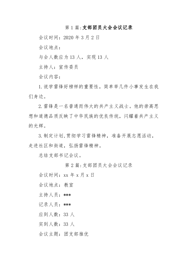 / 支部团员大会会议记录