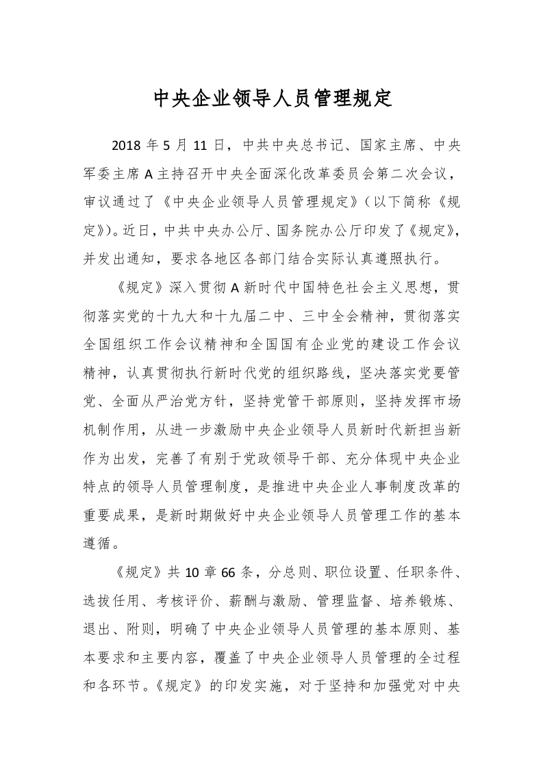 中央企业领导人员管理规定