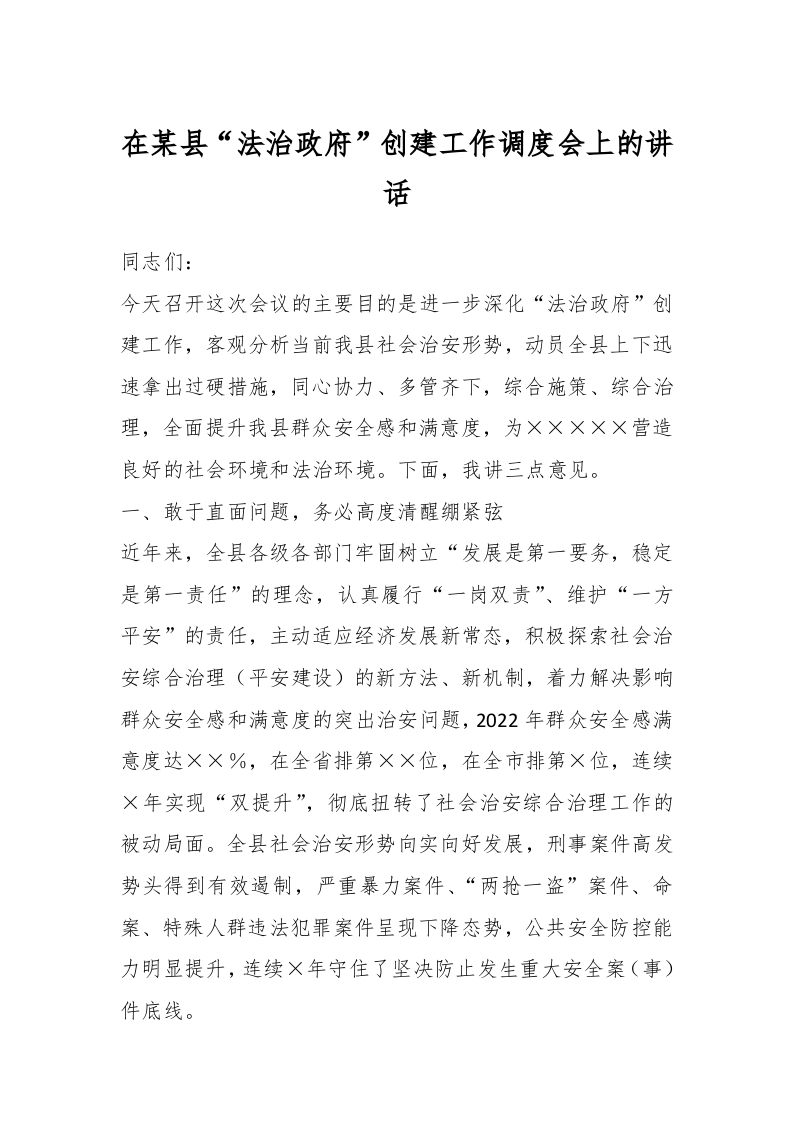 / 在某县“法治政府”创建工作调度会上的讲话