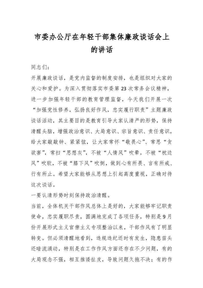 / 市委办公厅在年轻干部集体廉政谈话会上的讲话