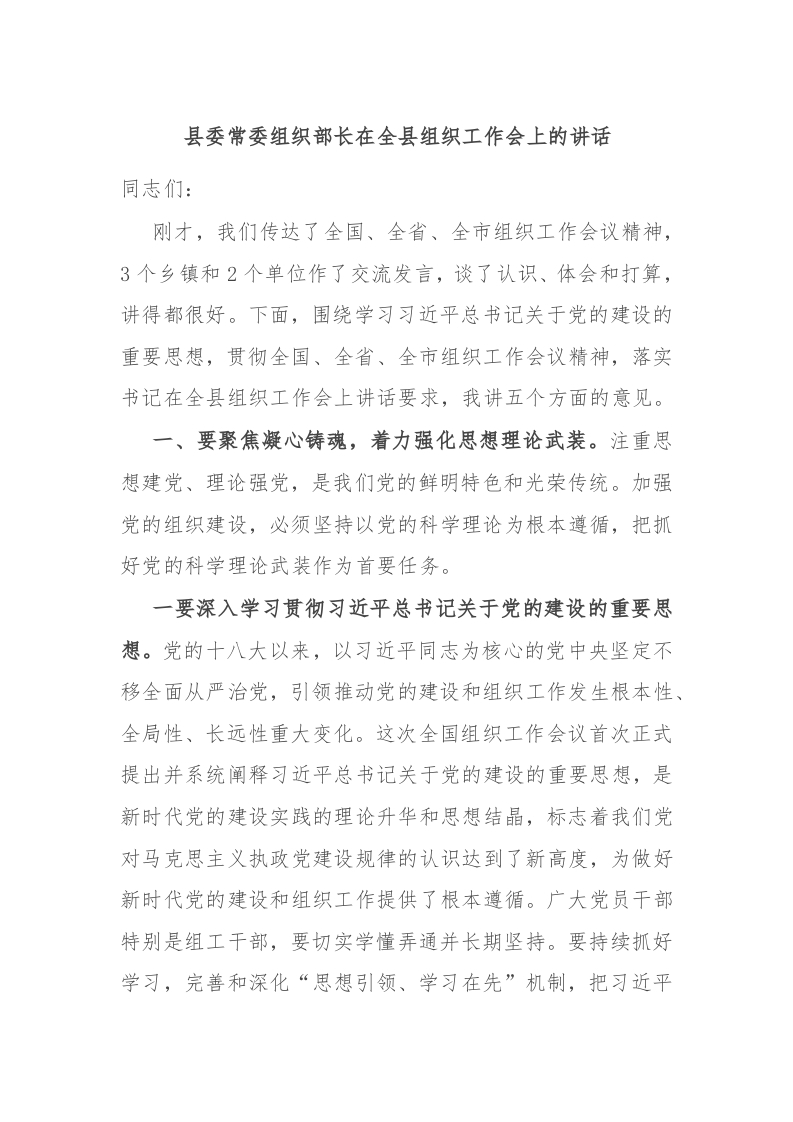 / 县委常委组织部长在全县组织工作会上的讲话