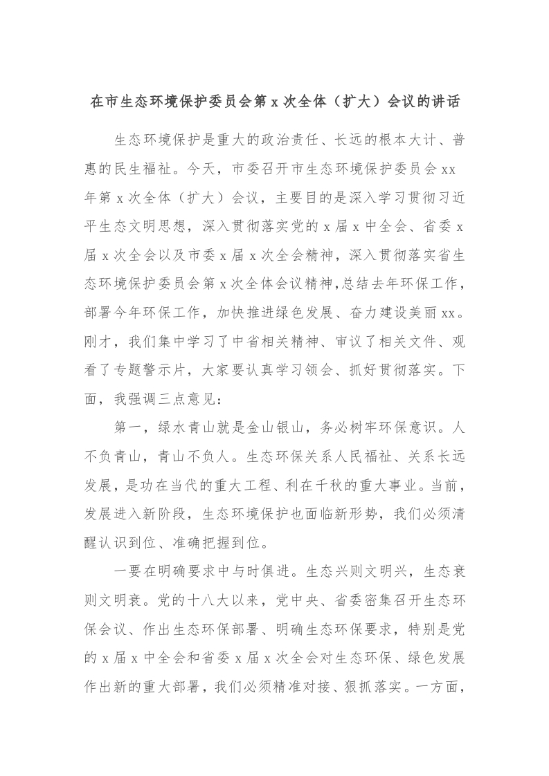 / 在市生态环境保护委员会第x次全体(扩大)会议的讲话