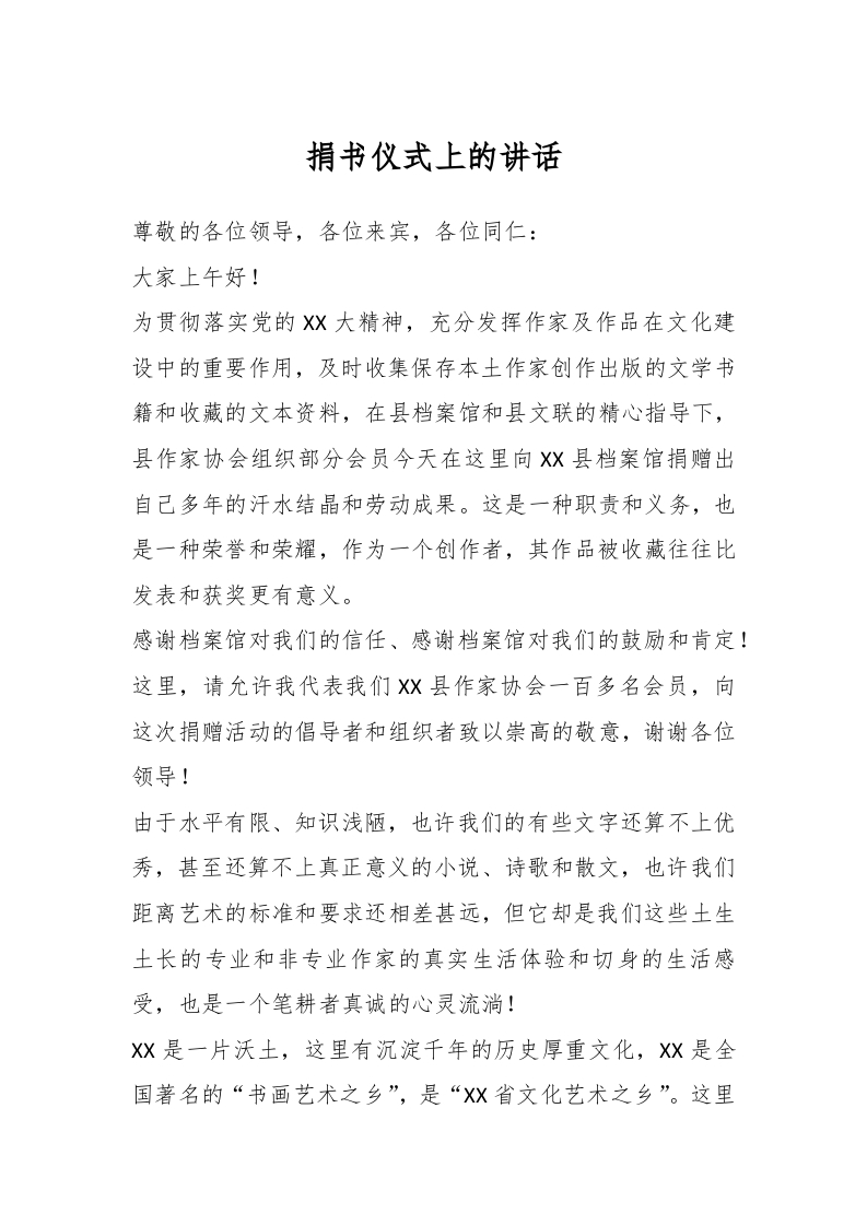 / 捐书仪式上的讲话