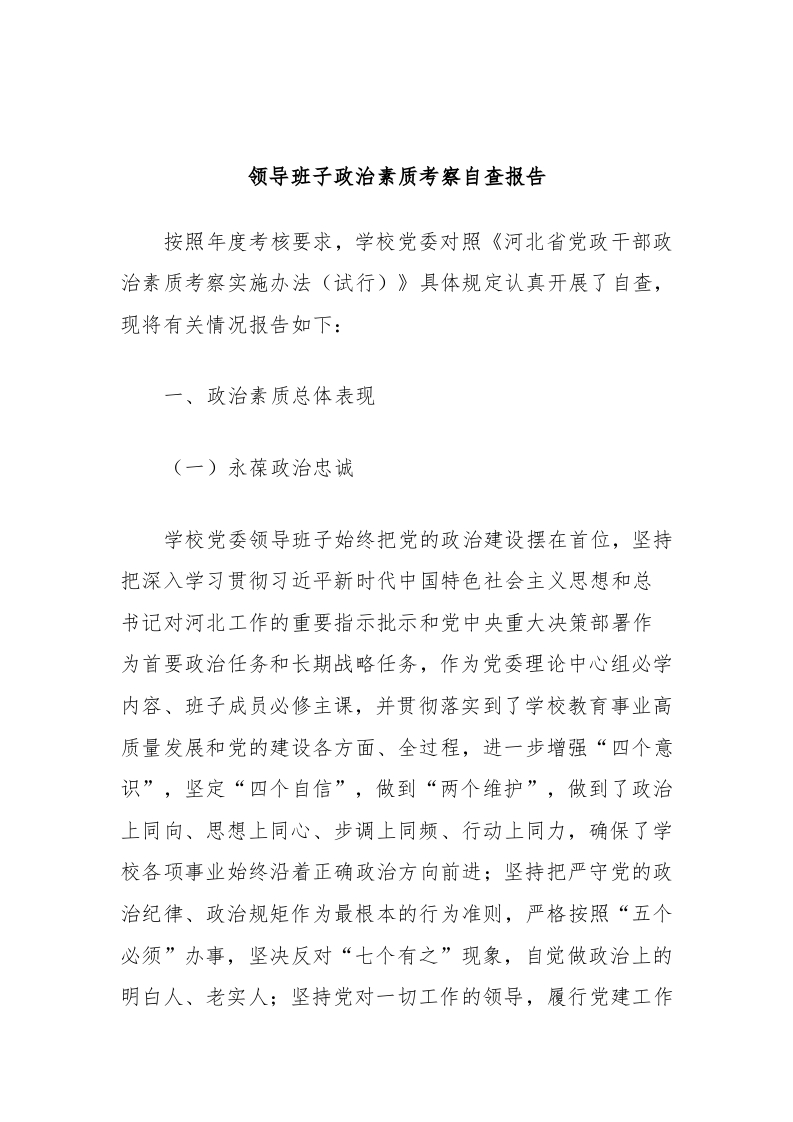 / 领导班子政治素质考察自查报告