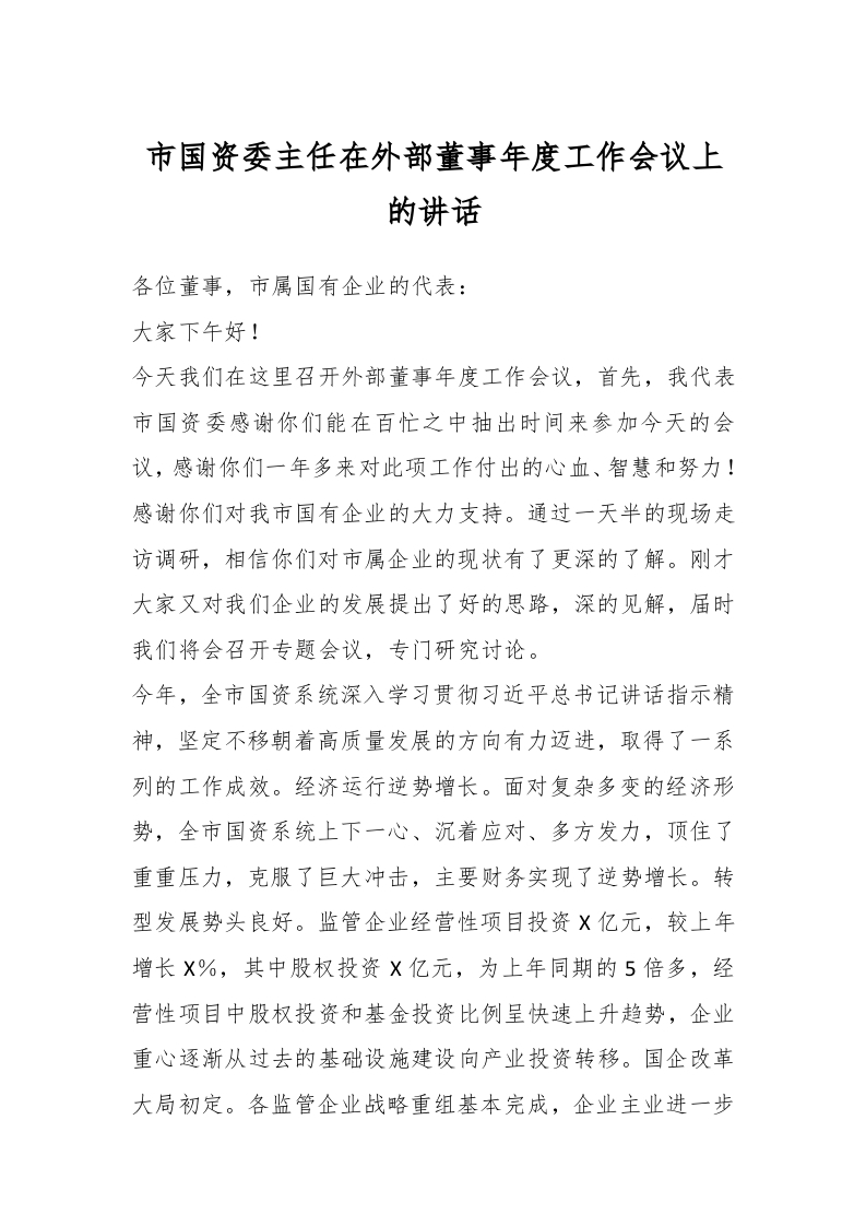 / 市国资委主任在外部董事年度工作会议上的讲话