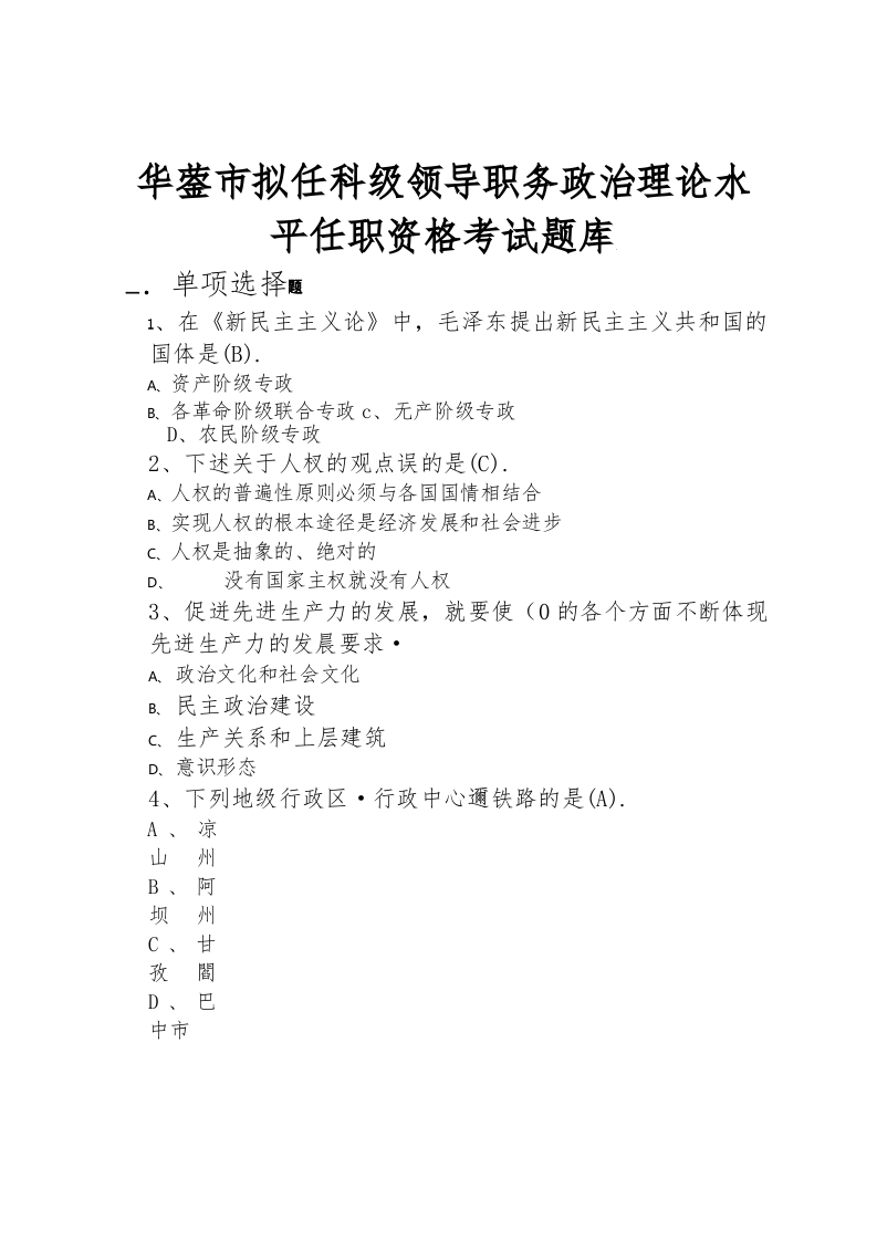 / 市拟任科级领导职务政治理论水平任职资格考试题库