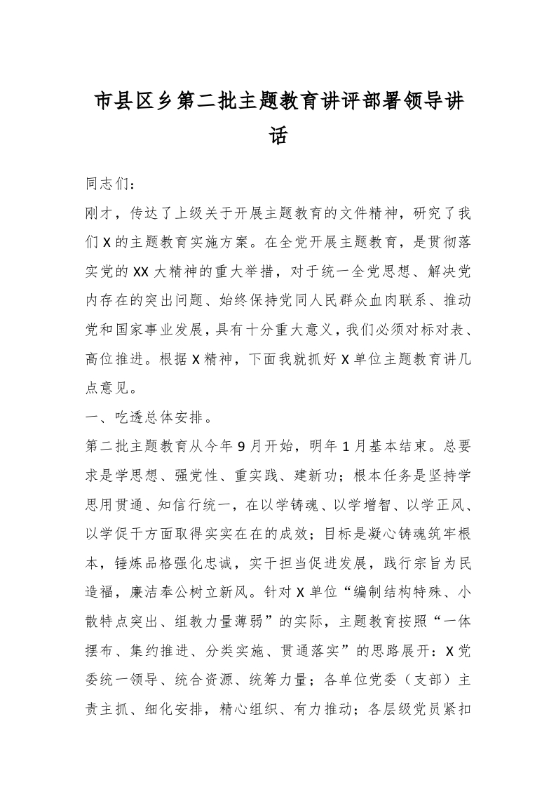 / 市县区乡第二批主题教育讲评部署领导讲话