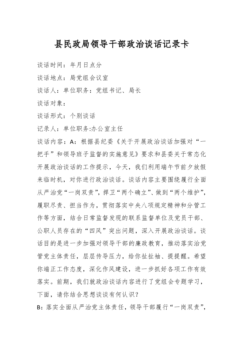 / 县民政局领导干部政治谈话记录卡