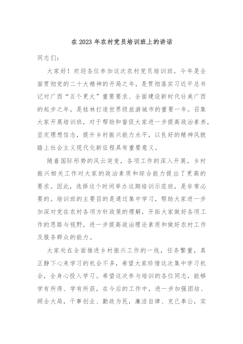 / 在2023年农村党员培训班上的讲话