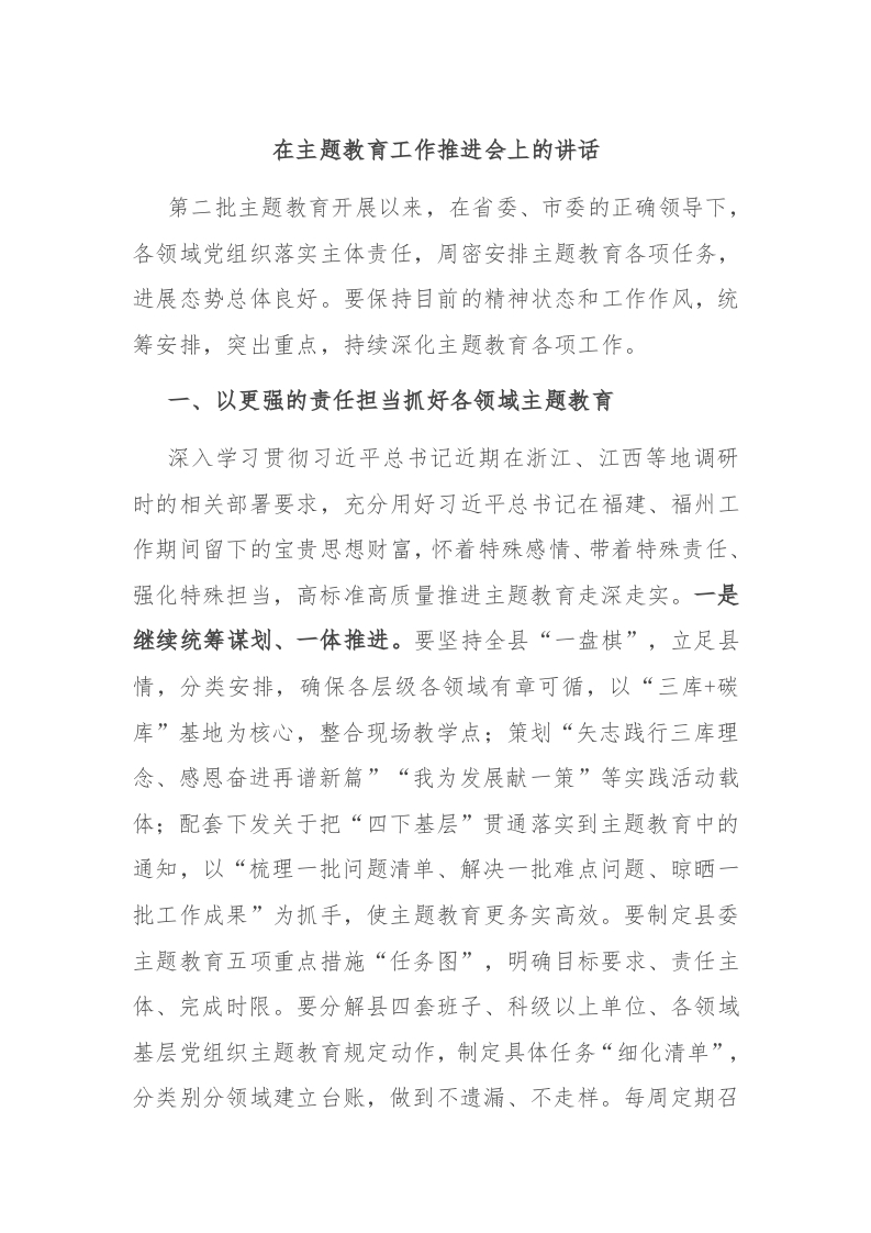 / 在主题教育工作推进会上的讲话