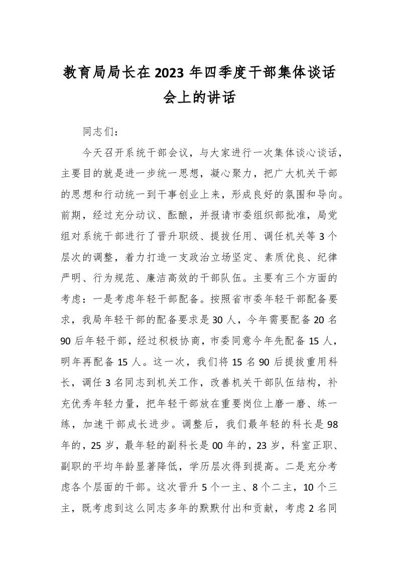/ 教育局局长在2023年四季度干部集体谈话会上的讲话