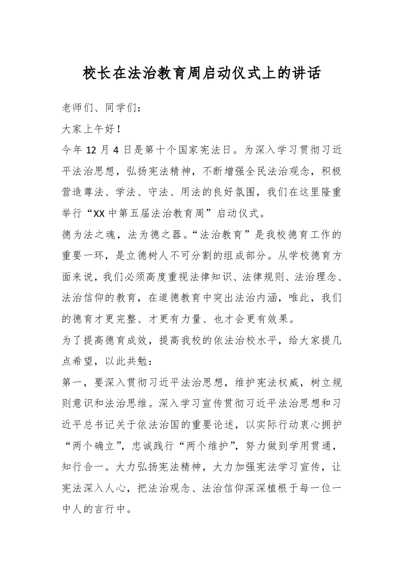 / 校长在法治教育周启动仪式上的讲话