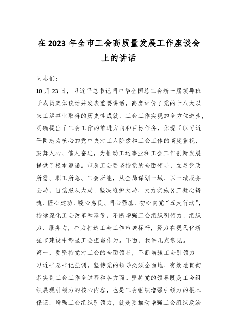 / 在2023年全市工会高质量发展工作座谈会上的讲话