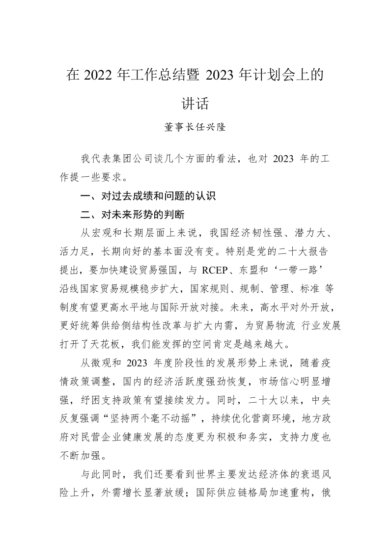 / 董事长任兴隆:在2022年工作总结暨2023年计划会上的讲话