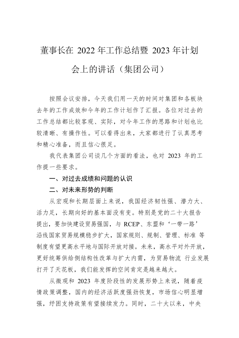 / 董事长在2022年工作总结暨2023年计划会上的讲话(集团公司)