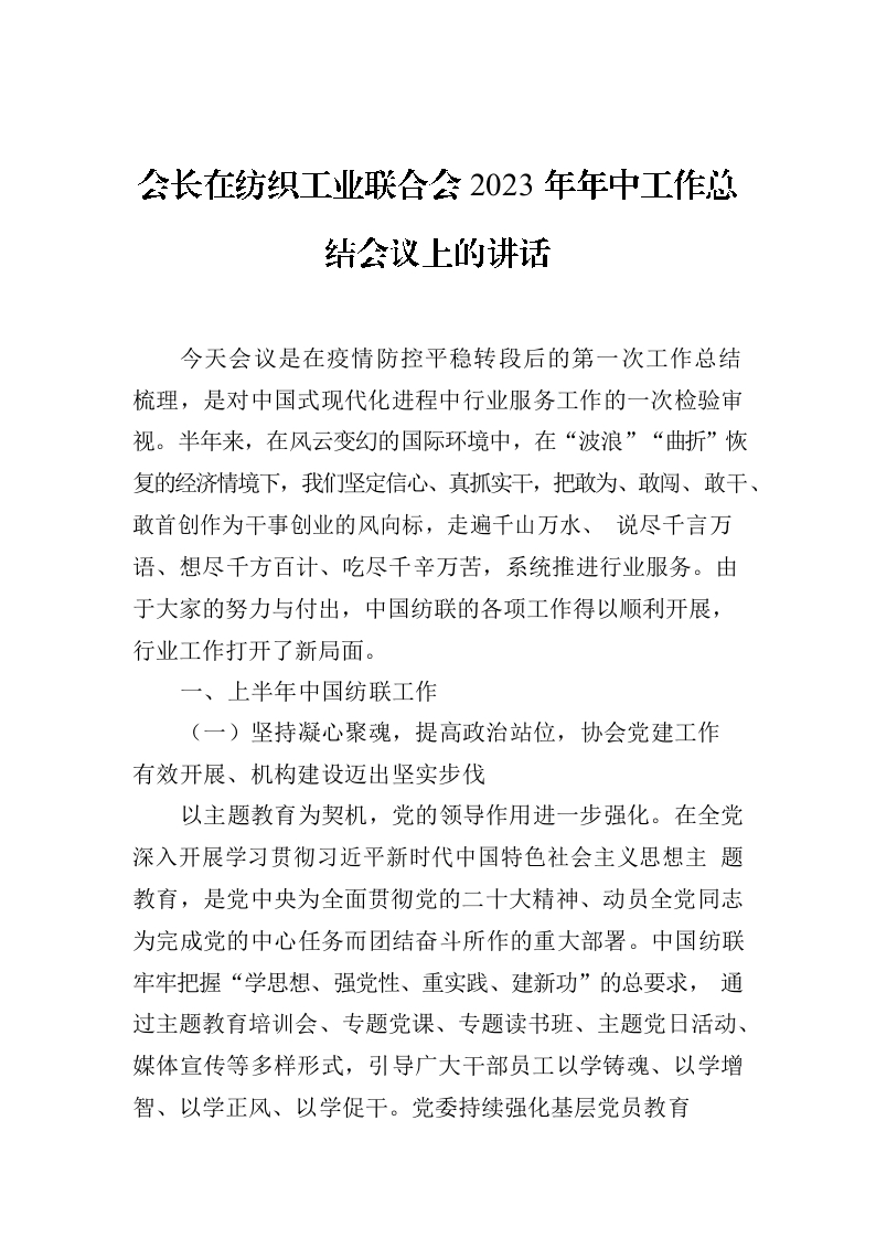 / 会长在纺织工业联合会2023年年中工作总结会议上的讲话