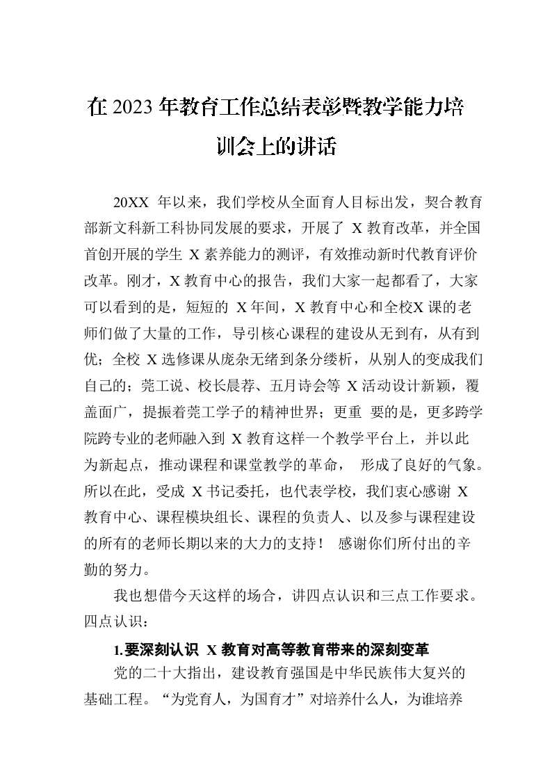 / 在2023年教育工作总结表彰暨教学能力培训会上的讲话