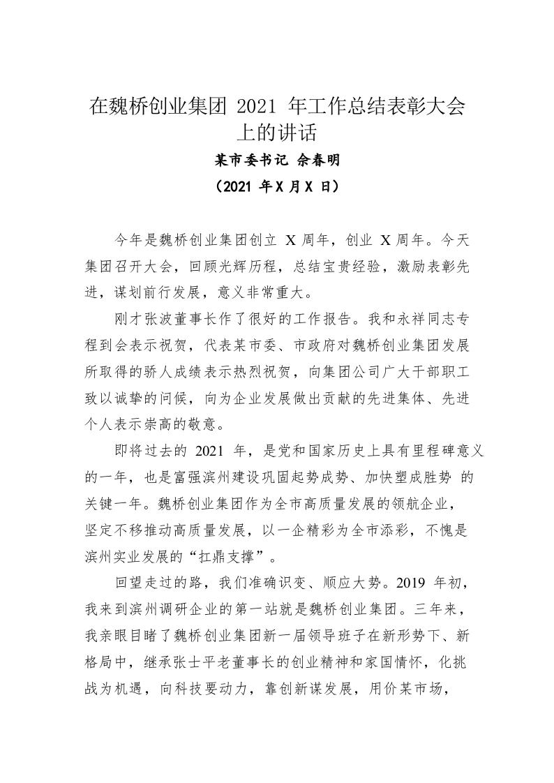 / 在魏桥创业集团2021年工作总结表彰大会上的讲话(20211230)