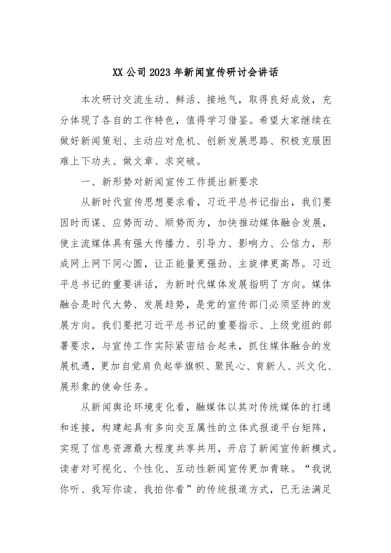 / XX公司2023年新闻宣传研讨会讲话