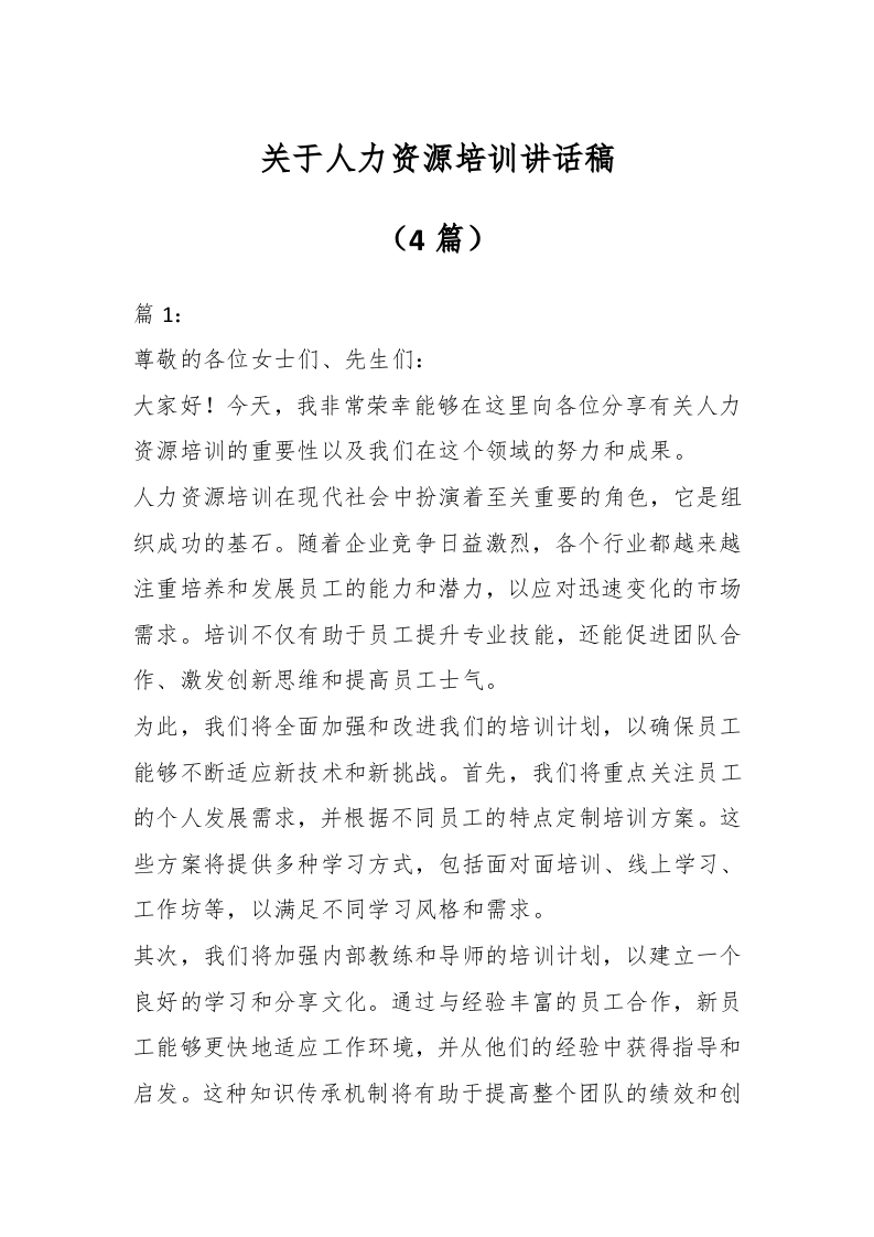 / (4篇)关于人力资源培训讲话稿