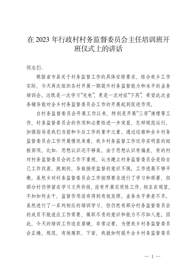 在2023年行政村村务监督委员会主任培训班开班仪式上的讲话