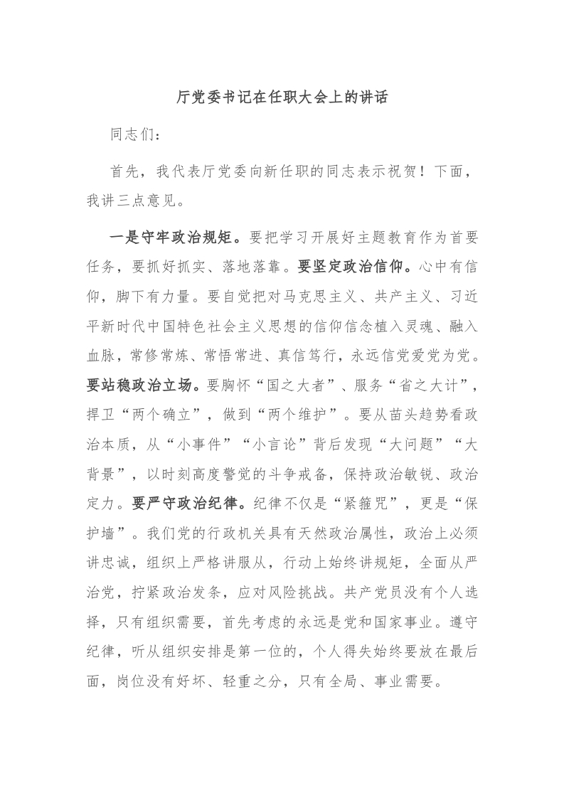 / 厅党委书记在任职大会上的讲话