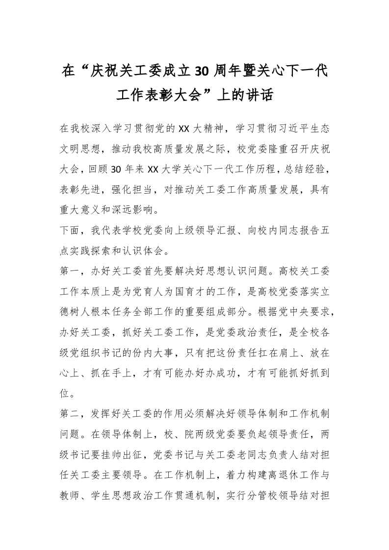 / 在“庆祝关工委成立30周年暨关心下一代工作表彰大会”上的讲话