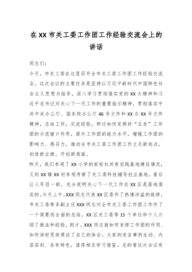 / 在XX市关工委工作团工作经验交流会上的讲话