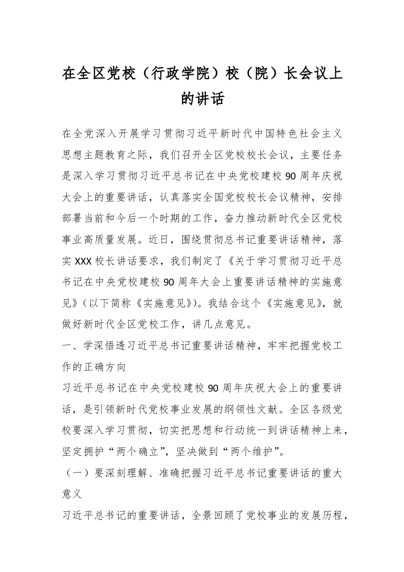 / 在全区党校(行政学院)校(院)长会议上的讲话