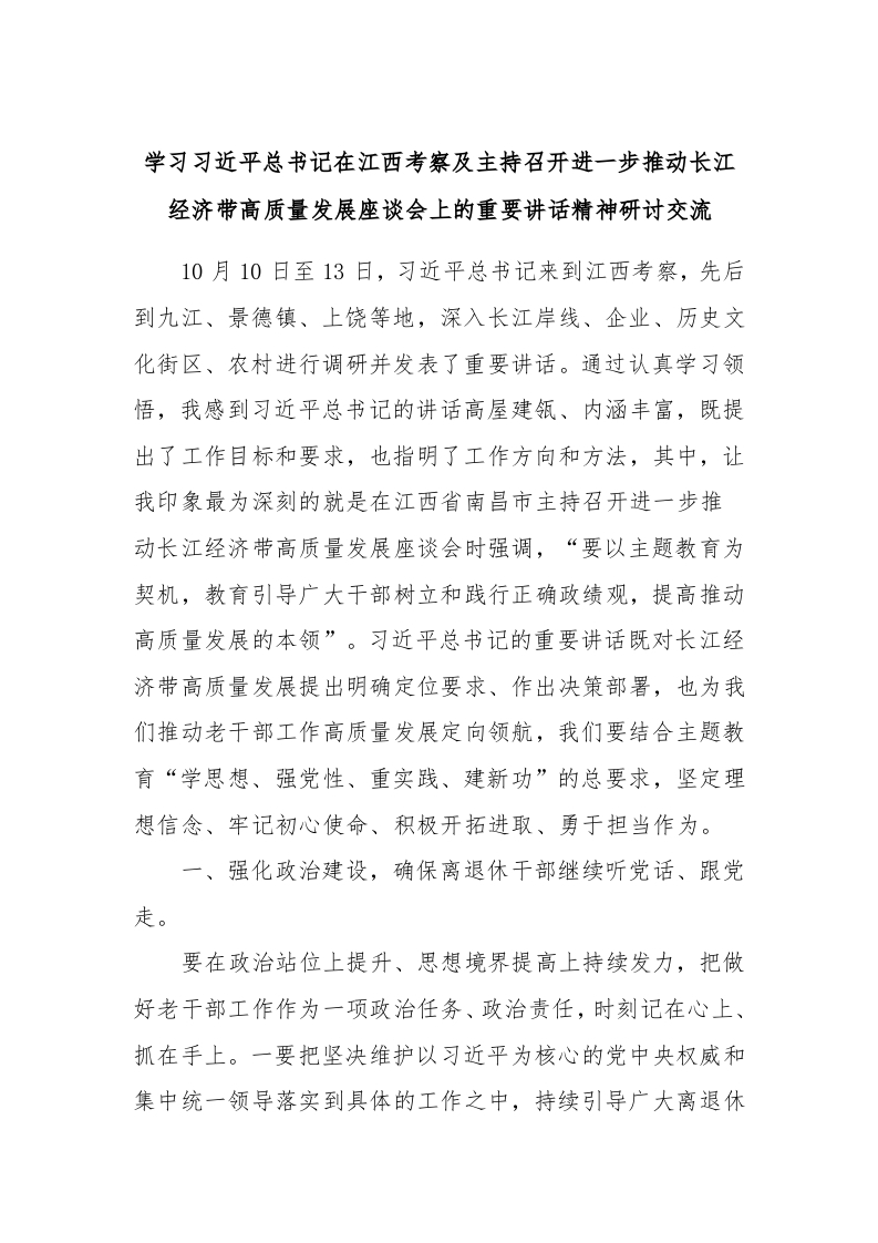/ 学习习近平总书记在江西考察及主持召开进一步推动长江经济带高质量发展座谈会上的重要讲话精神研讨交流