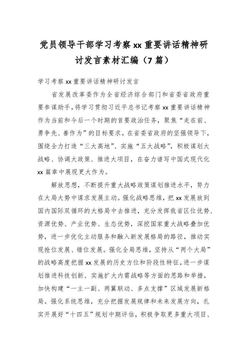 / (7篇)党员领导干部学习考察xx重要讲话精神研讨发言素材汇编