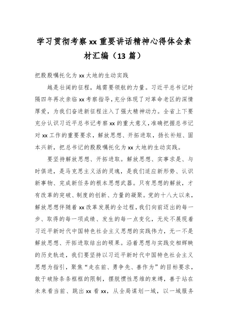 / (13篇)学习贯彻考察xx重要讲话精神心得体会素材汇编
