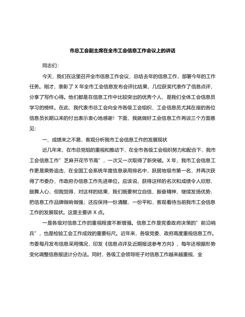 / (1.3)市总工会副主席在全市工会信息工作会议上的讲话