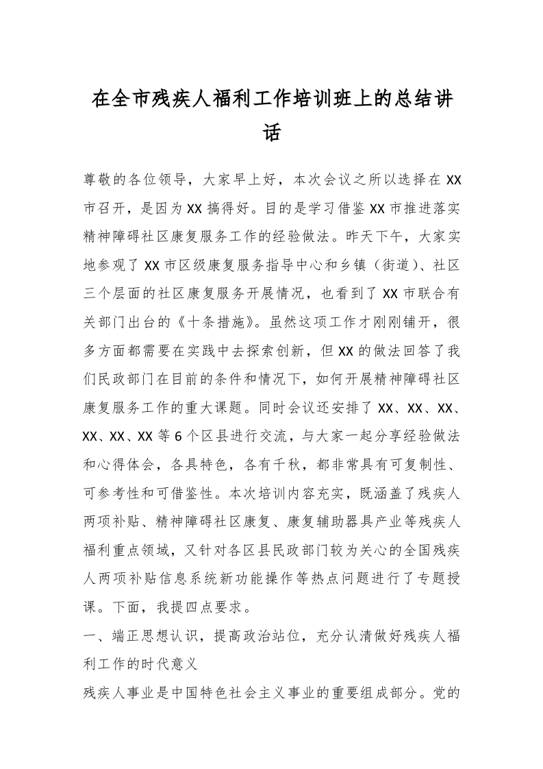 / 在全市残疾人福利工作培训班上的总结讲话