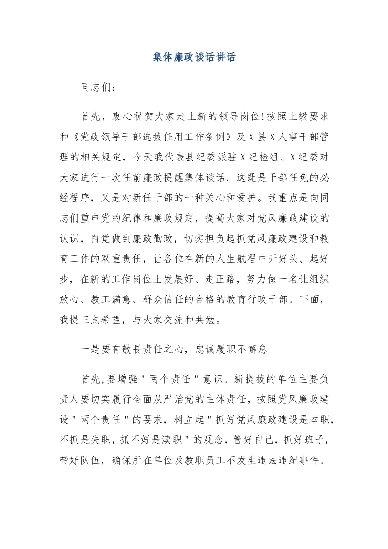 / 集体廉政谈话讲话